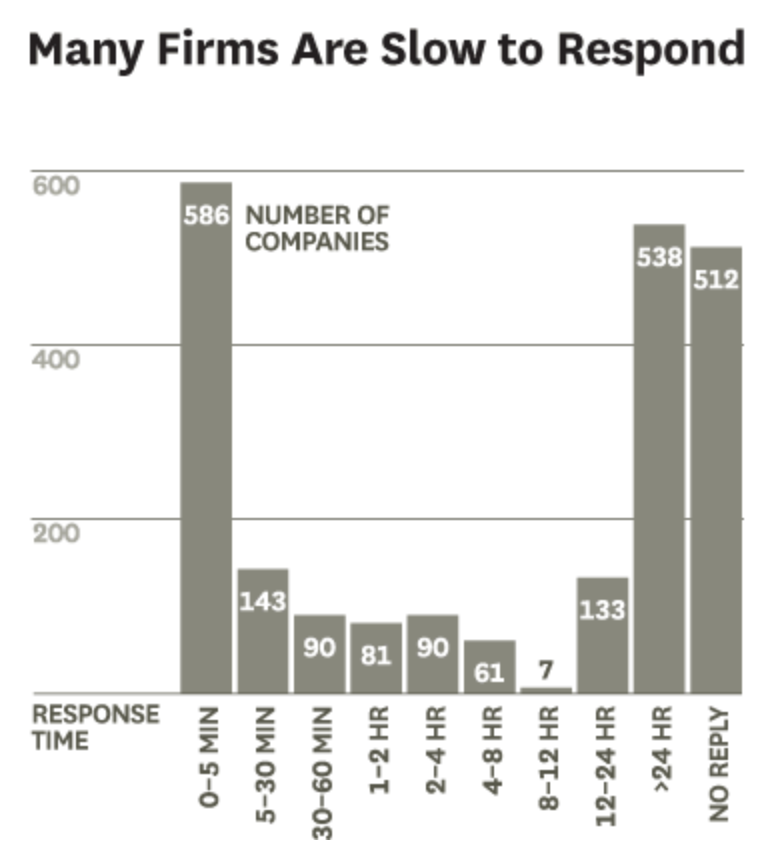 The average time it takes for companies to respond to leads. Image courtesy of HBR.