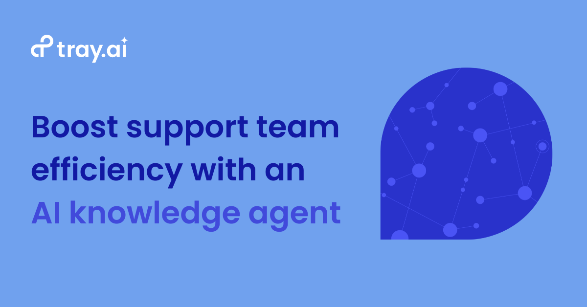 It’s time to stop experimenting with AI and start enriching your processes and making your teams more efficient. With Tray, you can get started right away and without having to hire a bunch of AI experts or massively expand your engineering team to build out complex pipelines while locking in with particular vendors. You can build a knowledge agent powered by a RAG pipeline to enhance your customer support team's efficiency, as well as other dynamic AI processes that integrate seamlessly throughout your organization.
