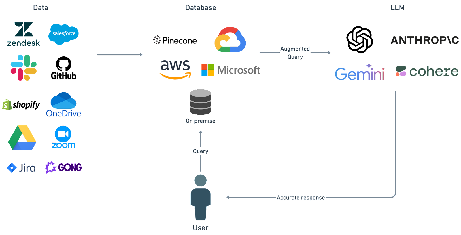 - Switch out LLMs and databases seamlessly to avoid being locked into a particular vendor, giving you complete control over quality and cost and the ability to quickly switch in newer, more power models and infrastructure