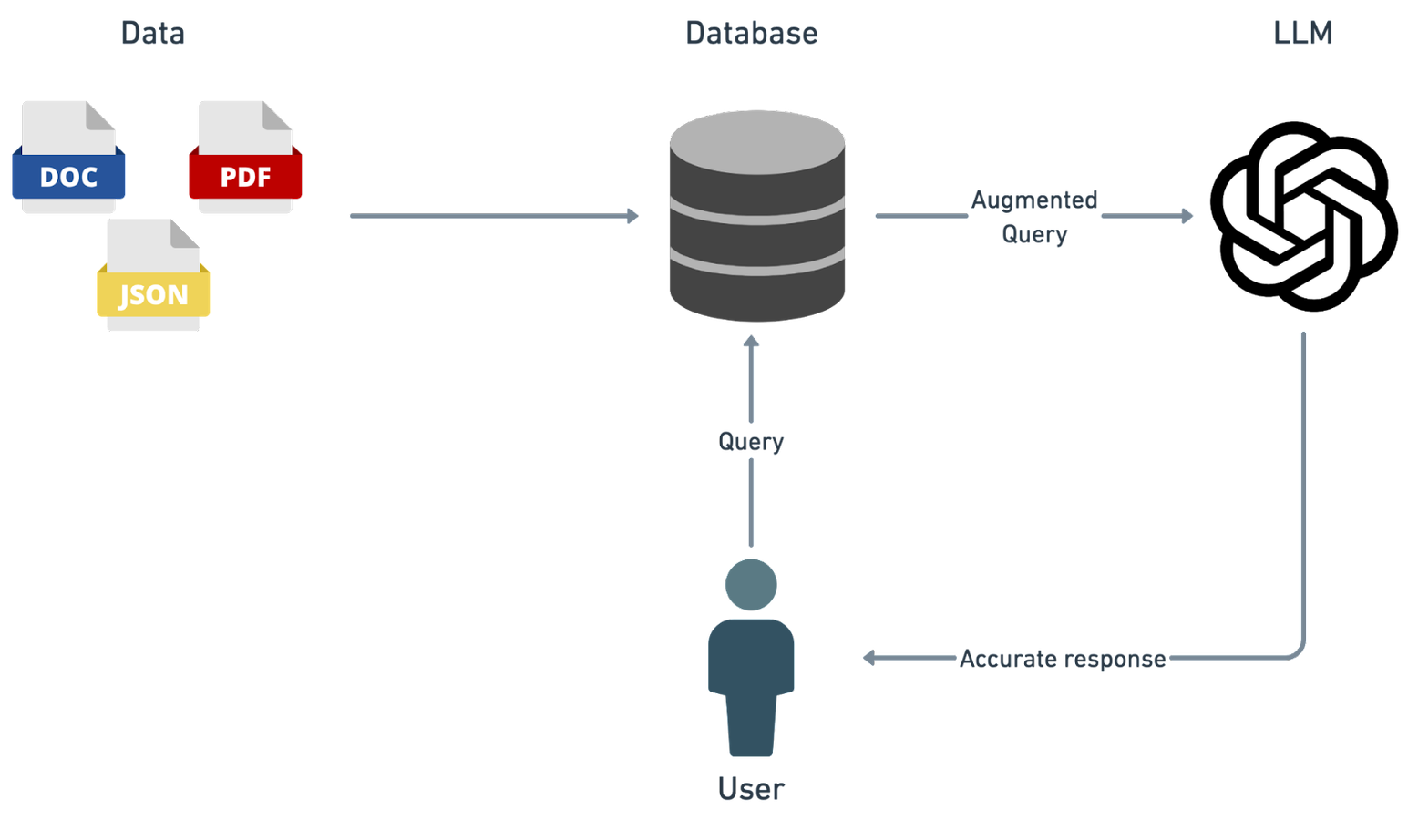 - Augmentation: The original query is augmented with the data retrieved